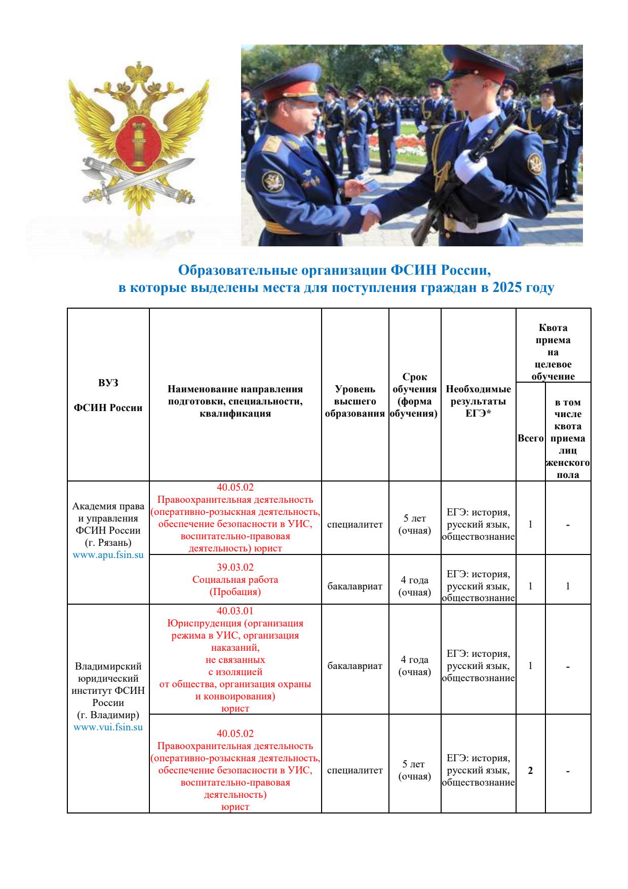 Образовательные организации ФСИН России