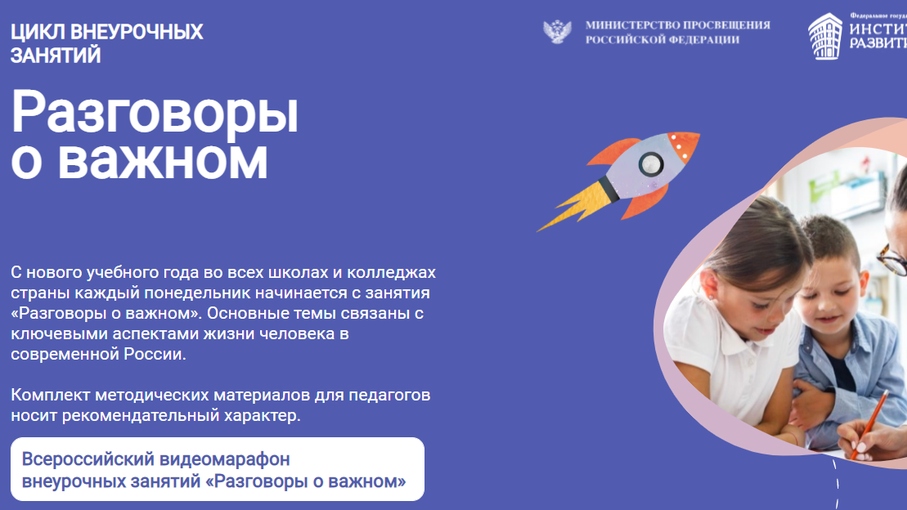 Каждый понедельник первым уроком во всех школах страны проходят занятия «Разговоры о важном». Основные темы связаны с ключевыми аспектами жизни человека в современной России.